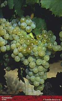 Grenache Blanc(白歌海娜):长势旺,中等成熟时间,其他与Grenache Noir类似。生产非常full bodied,和谐的白酒,酸度较低,回味长。用于教皇新城堡,Cotes du Rhone白酒中起调和作用。