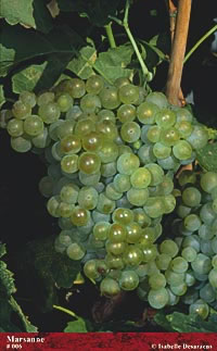 Marsanne(玛珊):生长势非常旺,成熟在9月15日以后。是一种比较难打理的葡萄,应种植于不肥沃的山边的地方。喜好温暖,多石的北隆河地区。有力,酸度中等,带有花、榛子的香气。