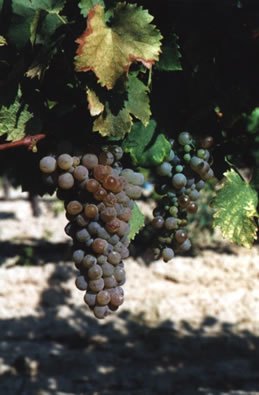 Cinsault(神索):长势非常旺盛的品种,9月中旬上旬成熟,喜高温,抗风抗旱,但是一定要很好控制产量。中等颜色。优雅而富于果香,低酸度柔和的单宁,适合酿造桃红葡萄酒和新酒。