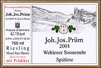 8. JOH. JOS. PRUM Riesling Spatlese Mosel-Saar-Ruwer Wehlener Sonnenuhr 2001 96 points, $30