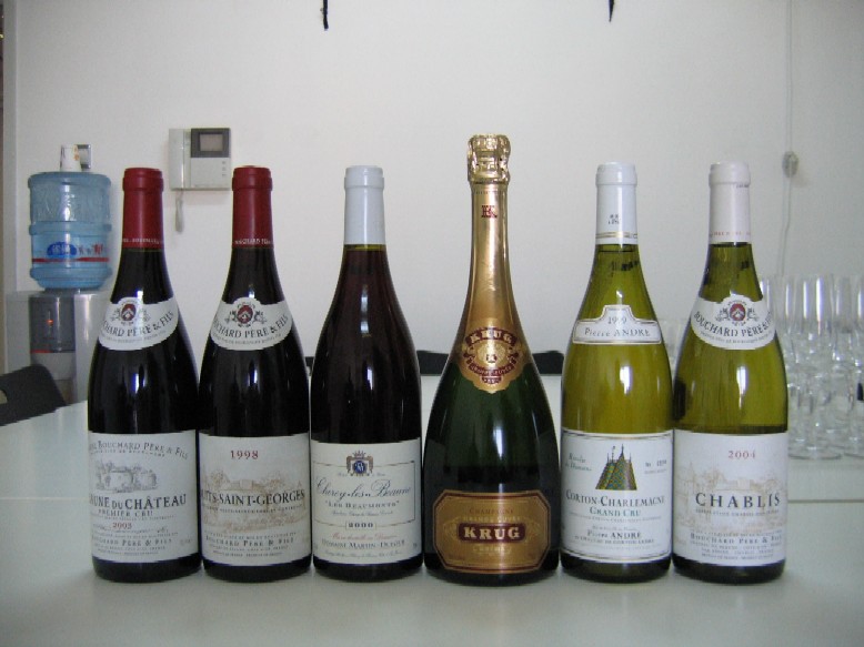 这一次的活动,准备共6款酒,其中包括1款Krug Grand Cuvee香槟,其余的2款白酒和3款红酒来自勃艮第不同的村庄,也包括不同的葡萄园等级,从Village到Grand Cru。