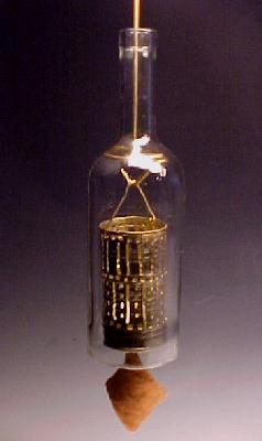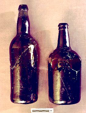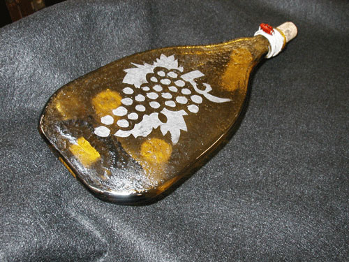 Replica of a 1680's-1700 wine bottle. Some Jamestown wine bottles have been found with seals attached. Wine bottle seals might show a family crest or monogram. Stands 7” high