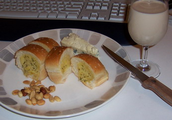 不过现在对芝士的认识多了,也尝过不同的种类。可以说开始接受它了。所以今晚就尝试与蒜蓉面包的结合。这款蓝芝士来自澳洲的一个风景怡人的小岛tasmania,那里也出产好酒。面包+芝士+甜酒可能是传统的搭配,今天试了也没什么特别,感觉一般。可能自己对芝士这种文化认识不深。