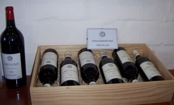很可惜,chardonnay 2004已卖完,没有得试。我试了cabernet 2004和1999,口感差不多,但99年有着更多的单宁。中等酒体,红色水果,油滑的单宁,平衡。来之前就一直想买,可惜试过后自己不喜欢那种味道,唯有放弃,但不失为一瓶好酒。以下图片是由99年到04年的cabernet,$350一个pack。