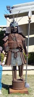 门口摆着一副武士盔甲。