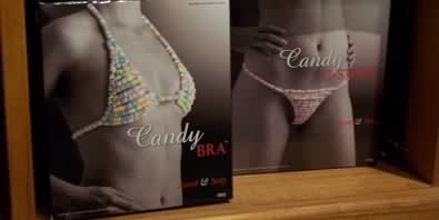 除了一袋袋不同口味的巧克力,还有做成内衣裤形状的糖,不知道里面是否真的如包装一样。