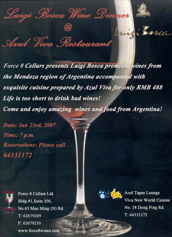 1月中旬的一个寒冷的下午.打开邮箱收到封威令酒会的广告信息.记忆里浮现出那藏在小弄堂里的店铺.黑色的基调,柔和的灯光.若有若无的背景音乐.应该是个去寻找温暖的好地方.