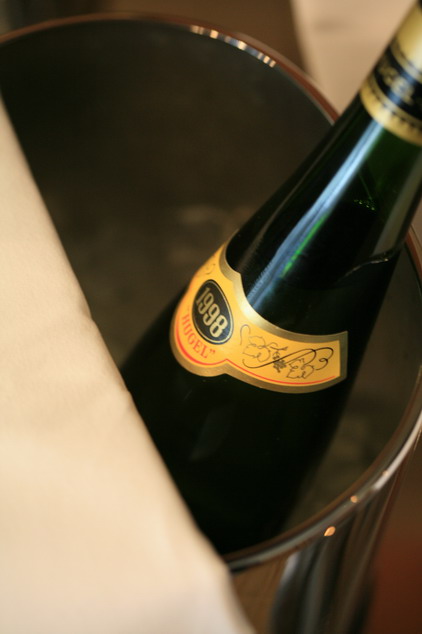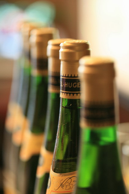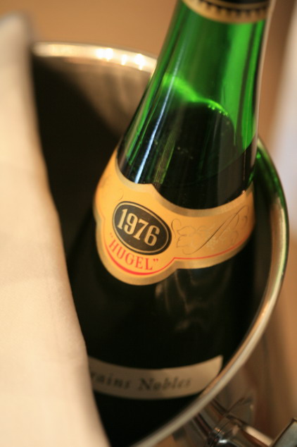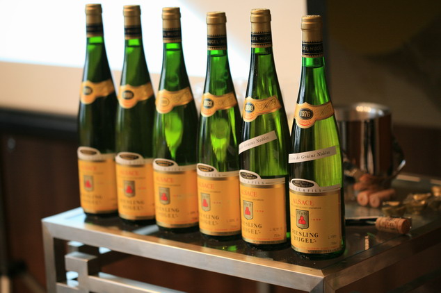 极少有机会品尝很老年份阿尔萨斯甜酒,Hugel提供了这个机会,VT的1983年份,和SGN的1976年份。老年份的甜酒陈年30年后品尝起来近似与干白酒,并没有多少甜感。拍了些照片,品酒记录另发。