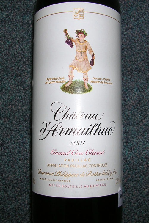 取只杯子,从冰桶中的一只2004 Wolf Blass Golden Lable Eden Valley Riesling开始了。这款Riesling已经有很明显的煤油陈年特征,并有烤吐司、饼干、柠檬的清香和蜂蜜甜。入口酸很活跃,有橘皮的辛;却还有种似葡萄柚般的苦、或者是水懒的感觉,舌觉得麻木。虽喝后有回甘,却已无法抚平在口中那段不愉快的记忆。91-