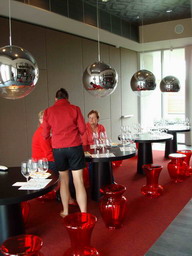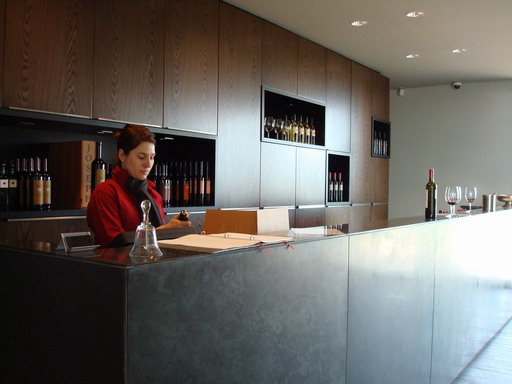 如同酒厂的名字, cellar door的设计, 柜台的摆设都是很朴实的简约主义风格, 最大的亮点是tasting的小区, 红黑白的强烈对比使人心神荡漾...(大家请先不要荡漾,我说的是地毯桌子和吊灯,并不是Kelly姐姐的健康的双腿)