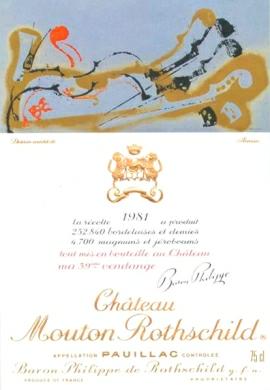 1981 Chateau Mouton Rothschild label signed by artist Arman