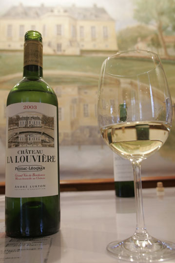 朋友送来了一瓶波尔多干白葡萄酒,对方是法国品酒师,盛情难以推却,只好收下。心里却止不住的嘀咕:波尔多素来以红酒和甜白葡萄酒而闻名,干白葡萄酒则以阿尔萨斯和鲁瓦尔河谷地区的最有影响力。波尔多的白葡萄酒就象被才华横溢的兄长盖住光环的孩子般默默无闻。看着手中这瓶来自于Graves (格拉芙)地区一个叫Pessac Leognan的AOC产区的Chateau Couhins Lurton 2003年年份酒,好奇心越来越大。