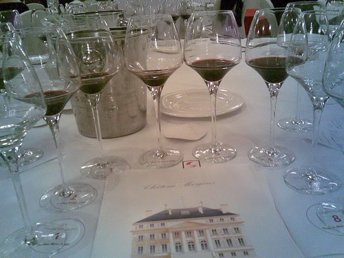 試酒櫃檯按編號以扇形擺開, 每個櫃檯後面均有酒莊的主人或釀酒師為大家斟酒, 介紹及解答問題. 有些熱門的酒莊如: Haut Brion, La Mission Haut Brion, Angelus, Pavie的櫃檯前大排長龍, 這些酒莊的一級酒佷快就沒了. 幸好我到得比較早, 所以仍有機會喝到 Haut Brion, La Mission Haut Brion 和 Angelus, 但Pavie就無緣試到.