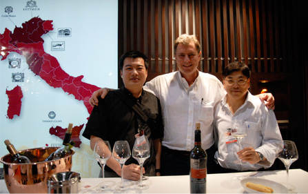 阿KEN自4月19日周六下午于深圳市九威行商贸有限公司透过凌春鸣老总及其属下之“葡萄酒直销网”工作人员(还有康帝酒业的杨荣老板)的支持,得以在狂风大雨的情况下,幸获99%的嘉宾出席率及宾客们对大部份的意国品酒表达出喜爱与追棒,让首段意国精选葡萄酒品酒会顺利完成。小弟在此向凌总,杨老板和各位酒业好友致以万分感谢!