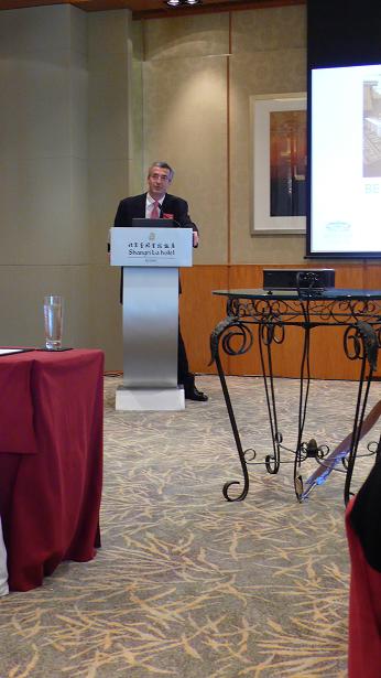 然后是英格兰后裔温文儒雅的爱德华查威克先生以“三个世界顶级产区智利,波尔多和托斯卡纳的综合评述”为题的漫长讲演。首先讲了自己家族的历史,葡萄园的分布和各自位置、土壤、气候的差异,所酿酒的特性,令人获益良多。