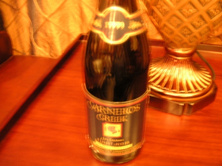 Now I have to share my tasting notes of a California Pinot Noir 1999 from CARNEROS CREEK as produced by Las Brisas Vineyard with readers. I have to clarify that I have no bias against Pinot Noir from any other country or region like Burgundy. This California Pinot Noir was served with Burgundy Pinot Noir 2001 & 2004 plus some prestigious Italian wines in a big dinner in China attended by 20 different guests. Due to some unknown reasons, the majority found that the Californian one was more outstanding than the other two Burgundy reds (probably those two reds had experienced hot Summer last year due to overlooked intensive temperature storage).