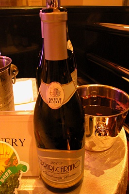 Napa Reserve除了在Napa拥有自有酒庄Howell Mountain Vineyards,还代理不少当地酒园的国内销售。试了他家自有酒庄的Howell Mountain Zinfandel 2000,少东家亲自开酒,当然要给面子。瓶塞上布满一层细小透明的酒石结晶,虽然Jazz37灯光昏暗,但仍晶莹闪烁。香气开放,入口很柔和,一款性价比好的酒。