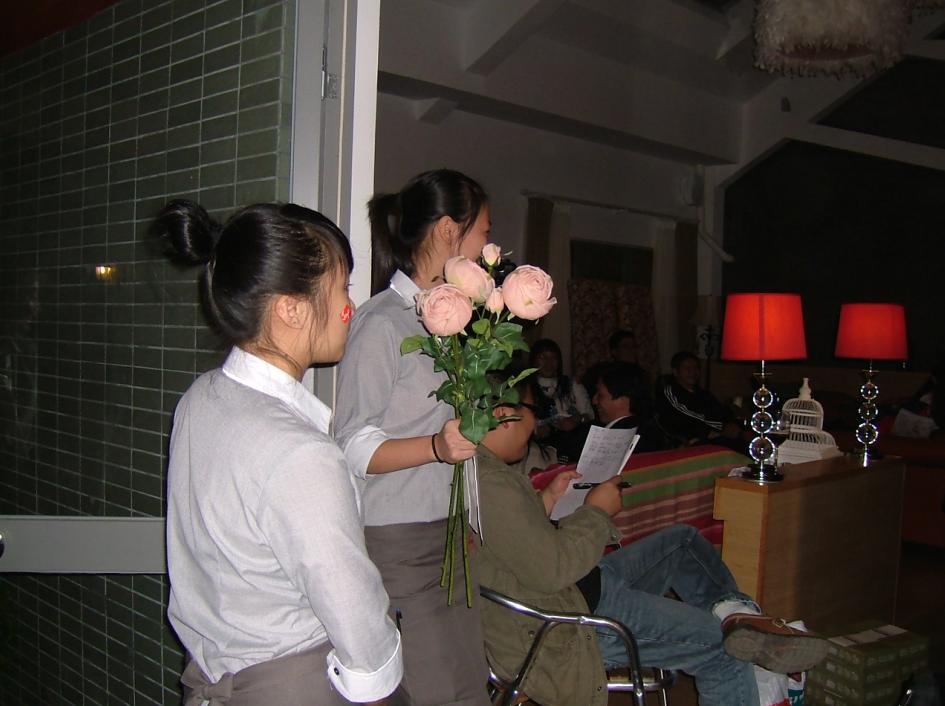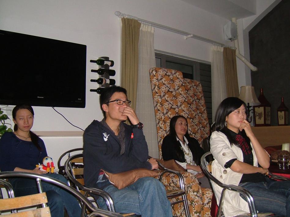 现场的气氛是很热烈,不过,似乎也就仅限于热点的老成员~四年的相处~他们之间有着太多的喜怒哀乐~~颠趴~深蓝~小飞猪~ And so on~这我能理解~可是,既然要吸收,或者说欢迎新会员,自然要关注一下他们~我不是说因为我在这受了些小冷落~然后就发这些唠叨~而是,我和好几位打过招呼~~都是在一旁兴致阑珊的~两位女生,说是朋友带来的~可是,我看见他们很早就拎包走人了~一位兄弟在晃啊晃的我不知道他在晃悠些什么~~另一位,在阳台外,先是很有兴致的拖了张桌子,品着酒~我坐他旁边,共饮~接着,他拿出书本做他自个儿的事~再然后,受不了日渐低下的温度,走了~~还有。。。所以,作为热点的领军人物,我不知道水煮的想法是什么?因为,我记得,他在帖子里也已经明确了一点,老朋友也好好聚聚~~或者,是因为老朋友相聚太开心了所以忽略了新朋友?~或者,这本身就是俱乐部的一种局限?当发展到一定的程度,当老会员已经相处到成为很好的朋友后,这个圈子,就不太能融入新人?~