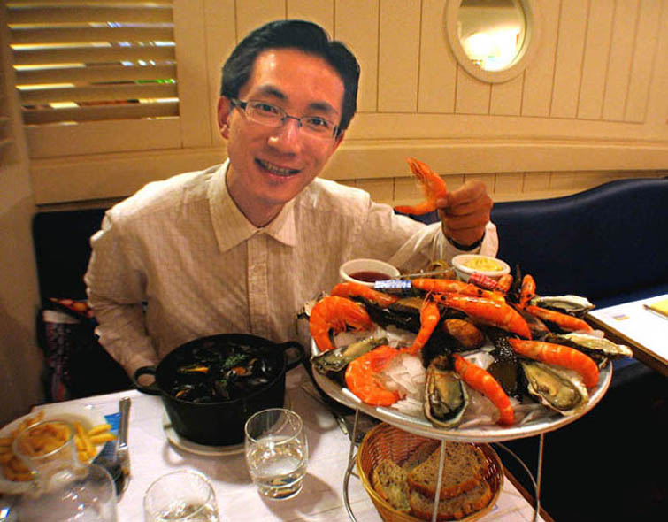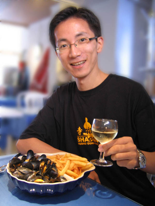 這次食物搭配比较不同传统,我在James买了一片当日捕获的海鱼(不知名的),一块黑安哥斯牛排(雪花分布很好)和大量生菜配朝鲜蓟。决定用此酒配鱼和牛。因为品时可乐让我做這尝试,过然不赖。但鱼肉煎后劲实(和龙虾肉一般),完全没一丝腥味,酒入口和鱼肉还蛮配。(第一次用红酒和鱼)