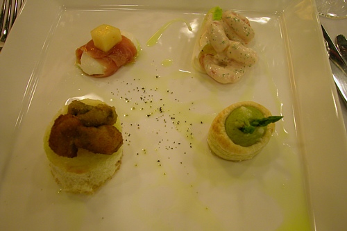 几排全部来自托斯卡纳的红白葡萄酒餐前已经打开,餐桌上的小食也很眼熟,应该是“意尚”的老乡——上海大马可意大利餐厅的出品。