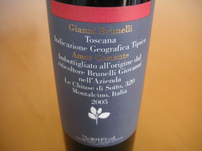 AMOR CONSTANTE IGT 2005永恒之爱红酒产自位于意大利中部Tuscany托斯卡拿省偏东南的Montalcino蒙特先奴山丘,那里的葡萄园平均在500米以上,土壤和天气都是造好酒的佳件。酒厂以男酿酒师Gianni Brunelli兹安尼布讷里先生来命名。布先生既是酿酒师,也是庄主,还是热爱艺术的大画家。很可惜,布庄主在2008年11月中去世,留下“永恒的爱”与几款年分上佳的Brunello di Montalcino DOCG和副牌的Rosso di Montalcino DOC红酒及整个园庄此等遗产给夫人Laura Brunelli女士,让她把酿酒业再续前缘。