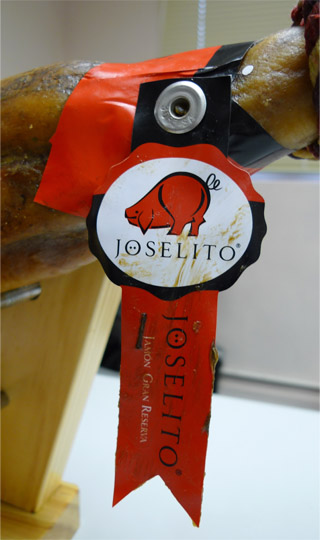 Joselito Gran Reserva黑猪腿是西班牙火腿中的巅峰之作,黑猪宰杀后,以优质海盐腌制,经过2星期的低温处理后,将海盐洗去,再将火腿送往储藏窖继续腌制叁年,经国宝级的大师品鉴后,方可上市,每年产量约40000只,价格从1000欧元至4000欧元之间,黄先生从西班牙选回的这条猪腿就是其中的佼佼者,售价超过3000欧元。