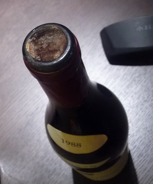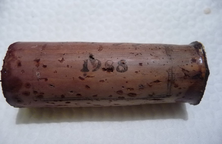 酒塞比一般的要长些, 而且要细, 所以单看会觉得很瘦长. 而且看得出浸得很透, 但不似Leroy那样的另人感觉不安, 不知道Leroy 是否受到他的影响, 也不知道DRC的酒塞是否也这样?