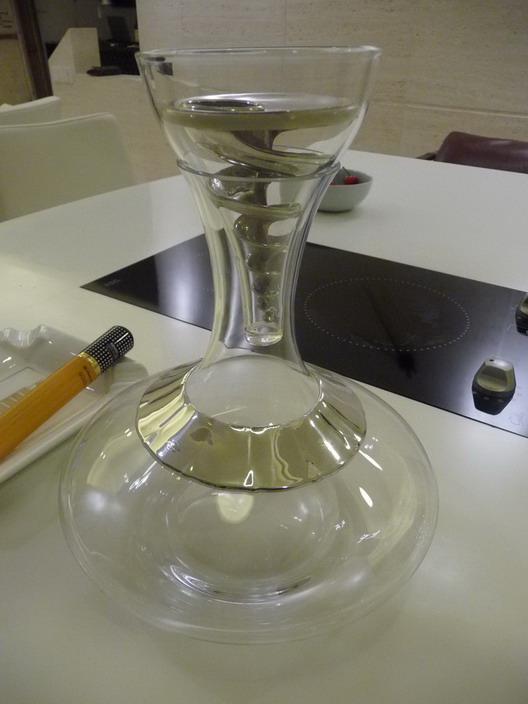 在品尝Jayer的期间我们还同时访问了耶稣的第一个门徒” Petrus”. 换瓶之后的两个小时我们开始品尝这美丽Decanter 内的传奇. 一股青草味扑鼻而来…..难道还没清醒? 酒色是漂亮的Ruby, 但已开始带点桔色了. 大家都闻到了人参味, 丹宁并不强. 这酒的表现与心理的期望值相差很大. 酒体带Herb味, 多半是那年的葡萄过早采收或是雨水过多造成. 但在我心里宁愿相信是这位“大师兄” 还没睡醒.