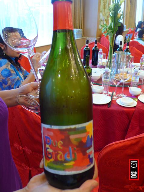主角上场, 酒色已初显老态, 由于未经过滤, 虽不算浊, 但也能看到细小的悬浮物. 初闻的味道的确反应了N. S. G. 的Terroir. 有点动物的体味, 香气柔和但紧凑, 在我脑中浮现两条水平线, 而我对这杯酒所有的感觉似乎把这两条线之间的空间填得满满. 也就是说这瓶酒的表现了它该有的实力. 怎么说呢…就好比一般人打7号铁的距离落点多半在170-130码, 而我每次挥杆(闻香), 都落在150码上下, 而且还杆杆打在甜点上!(不知道这样解释大家清不清楚?)