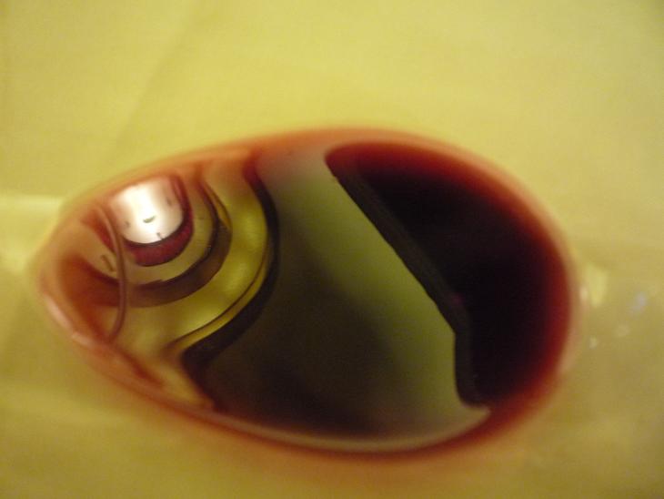 也因为底部的深色让我们发现了耀眼的结晶(白色的小点), 不知道是否是硅酸盐? Petrus 的酒塞也是一样.