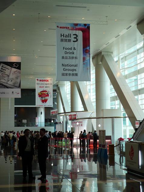 什么是HOFEX? 始创于1987年,两年一度的HOFEX国际食品餐饮展览会将再次假香港会议展览中心瞩目举行。作为英国奥伟展览联盟成员之一,HOFEX的主办单位香港展览服务有限公司举办的国际展览数来有质素保证,此国际食品餐饮展更早于1995年已取得UFI国际展览联盟的认可资格,为亚洲地区第一家。 这个为期四天的食品和餐饮业盛事,占用香港湾仔会议展览中心两层楼共11个展览厅,总面积达44,000平方米,较上届增加28%。参展商数目更将再创新高,高达1,800家国际知名厂商当中包括41个国家参展团,其规模将是2009年亚洲最大的国际食品餐饮展,为一众亚太区参观买家展示众多崭新的优质产品,大部份展品更是初次于亚洲登场。 为配合不同参观商的需要,HOFEX特设多个专题展区包括: N.O.W. (Natural, Organic, Well-being) –亚洲国际天然、健康、有机食品饮料、休闲设施及供应展览会 现今都市人崇尚健康生活,更于亚太区广泛盛行,一众饮食及款待业的从业员亦因此作出相应对策,而N.O.W.的出现无疑为一众行家提供了一个最全面及方便的采购平台,展示多种有机和健康产品,例如乳制品 / 大豆 /谷类产品;功能保健食品 / 维他命和补充剂;海鲜;香熏疗法 / 香熏油;水疗和健体设备 / 供应 / 服务;室外家俱或其他相关设备及服务,供他们搜索心水之选。 承载着HOFEX过往佳绩,N.O.W.初次登场便获得业界及众多相关机构的支持,如香港的蔬菜统营处及鱼类统营处携手合办有机耕作及水产养殖场,以推广有机耕种及饲养优质鱼类,同场专题演讲及论坛亦务必令入场人士获益良多。 美酒大道 及 烈酒广场 为配合买家的不同需要,大会首次将葡萄酒及烈酒划分为两个独立的专区 – 美酒大道及烈酒广场,以方便一众酒吧及餐店主管、品酒师、调酒师及爱酒人士搜购心水之选。不论您锺情于葡萄酒、啤酒、烈酒或各国佳酿,这两大主题区都是您的必到之处, 尽情享受个中的欢乐, 共建美酒之都。 咖啡茶叶园 若阁下是茶或咖啡的忠实支持者,就要到访这个以两大主流饮料为主题的区域,沉醉于现场香气四溢的气氛,品尝多种名贵兼独突的茶或咖啡,甚或向一众专家讨教更多有关泡茶或磨制咖啡的种种心得,发掘更多有趣及一手的讯息。 国家参展团 汇聚来自世界各国的参展团,透过HOFEX展览馆各买家展示其优质产品,应届HOFEX包括41个来自澳大利亚、中国、义大利、日本、韩国、西班牙、台湾、美国、法国、土耳其及其它地区的官方团参与这项两年一度的业界盛事,机会难逢。 同场举行多个精彩及专业活动 HOFEX除了是蜚声国际的商贸展,更是一个多元化的业界盛事,要亲身体验HOFEX的魅力所在就千万别错过以下万众瞩目的活动﹕ 香港国际美食大奖 (HKICC) 国际美酒大赛 世界调酒师公开赛 记紧要进占有利位置,专注欣赏参赛者如何施展浑身解数,展示其才华洋溢的一面,为制造出各种紧张刺激兼难忘的精彩场面, 让现场观众也能尽兴而回. 百尝言道:——以上香港新闻稿,咱们就闲话短说,言归正传,话说五月七号当天,粤港澳葡萄酒联盟的各位同好们,在会长老蠹兄的带领下浩浩荡荡的杀奔会场而去: ——入场: