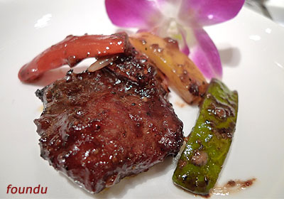 晚饭上,凌总拿出他的最爱之一,来自意大利威尼托的“CA' RUGATE AMARONE”。不过,目前在中国消费者中,相对于意大利皮埃蒙特(Piemonte)的巴罗洛(Barolo)和托斯卡纳(Tuscany)的奇安帝(Chianti),Amarone这类型意大利酒就更少人了解了。虽然是由风干的葡萄酿造,却又不会太甜,风格非常独特。此酒呈深宝石红,酒体密度有些浅薄,杯缘泛着紫光,挂杯长。闻起来香气浓郁而复杂,有樱桃木香、肉桂、可可、草药、甘草、烟熏梅子的味道。而且樱桃和少许贵腐的气味一直持续。入口则感觉酒体丰满醇厚,柔顺而细腻,而且回味绵长。丰富果香气息始终充满口腔。Amarone是一款值得等待欣赏的酒,需要时间来展示不同时段的风味。