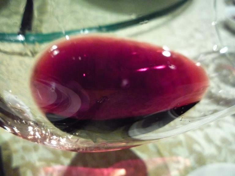 酒提前一个小时就开瓶醒酒了,酒色是幽深的、很有力量感的紫红色。 近看,很梦幻的感觉.