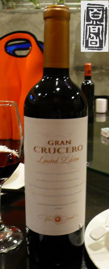 老蠹兄带的智利酒乃Vina Siegel酒厂的 Gran Crucero Limited Edition 2005:黑红色,香气不暴烈,但愉悦,有焦糖、烤榛子、米饭的香,口感甜而顺滑,丹宁不强,柔软指数不错,骨肉匀称,果味亦好,余味及空杯显示酒质极好。葡萄是以色拉子(Syrah)为主的混合品种。