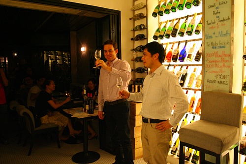 今晚的活动设在Bin74的wine room,地处传统的领馆区域的静谧之处,但还是很容易找到。进门已经好不热闹。海牙与他Boss忙着给客人介绍今晚的主角——来自宁夏贺兰山脚下的酿酒师高源。