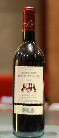 Chevaliers d' Aquitaine - Bordeaux Rouge 作者: admin 时间: 2009-08-01 分类: 酒友随笔 暂无评论 Chevaliers d' Aquitaine 2007 - Bordeaux Rouge Origine : A.O.C Bordeaux Dégustation:开瓶后是复杂的多种果味,半小时后有烟草、皮草和明显的黑醋栗味,还有些许的肉桂味,单宁酸柔和,结构稳定,典型的Bordeaux。缺点,没有丰富的层次感。或许还没有到巅峰期吧。总体来说,偏男性口感,不够活泼诱人。