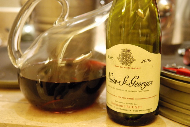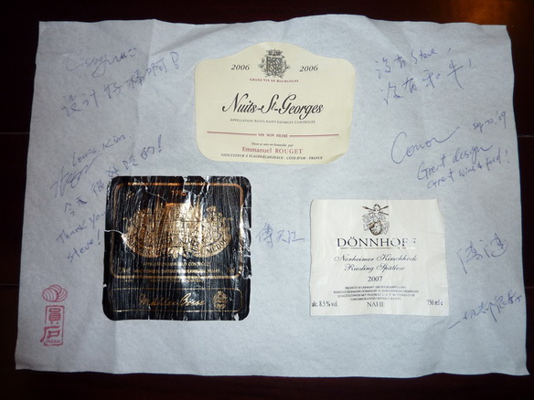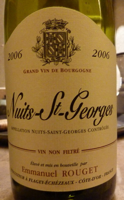 十一将至,约了几位酒友带着酒伴到我设计的日本料理餐厅吃饭. 由于餐厅内的食材种类多样,故决定还是以酒为主角, 再看酒配菜. 事先调查了大家要带的酒款后. 翻翻自己的酒柜. 挑了一瓶2006 年Emmanuel Rouget 的Nuits-St-Georges. 心想搭配牛肉及红肉的鱼都可以.