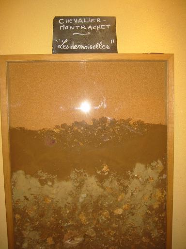 上面是Bourgogne Chier Montrachet ‘les domoiselles’这个小Climat的土壤结构图,在这个图中我们可以看到其实黏土和壤土的深度不多,主要是以石灰石,白垩岩为主的土质结构。
