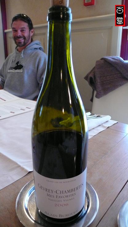 回头再来,La Justice易入口,很好喝。Place Des Lois要慢一点喝,一点药香,有点苦,陈年能力不弱。Mes Favorites这酒的特点仍没突出来,也是要陈年,但是细致、优雅,细细品才知。Jean-Luc找回木塞塞回去,等一下带上去吃午饭。(果然,午饭时好喝多了。)Les Rouges du Dessus颜色还是很深,确实很好的酒,好喝的酒,让人兴奋。Chambertin Clos de Beze就是优雅,其他语言都是多余了。