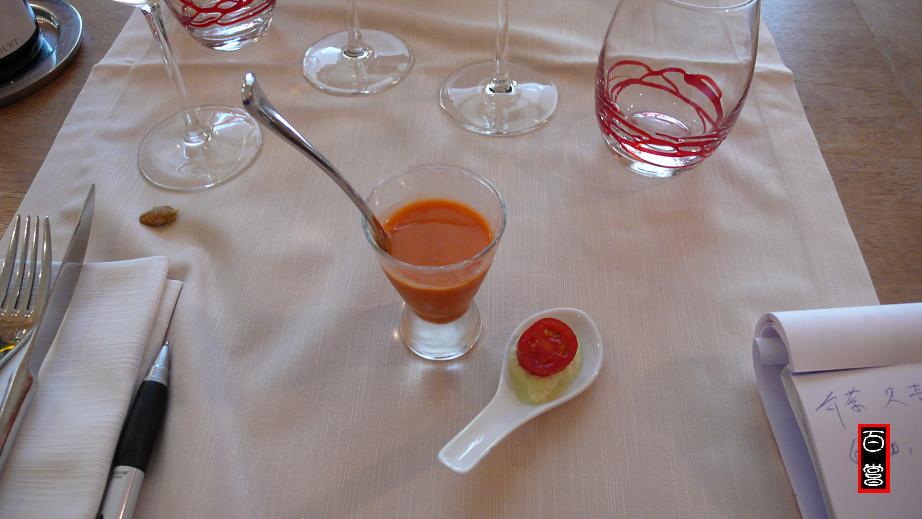 紫色的边缘,特别细致圆润,闻已经很好,果味新鲜,酸度好,丹宁细致如纱,还在发酵中,已经很好了,可以想见它的将来。