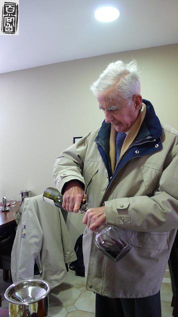 正聊着Louis先生推门进来,试酒的时候提到醒一下会不会更好喝的问题,老人竟然拿着一个古老的醒酒瓶送过来,并且亲自将酒倒进去!——Charmes-Chambertin。田是他们家族在1933年买入的,葡萄的平均树龄75岁,和老人是同一代人呢。