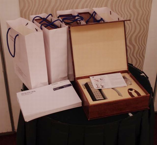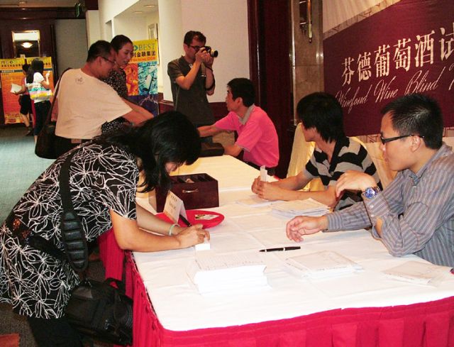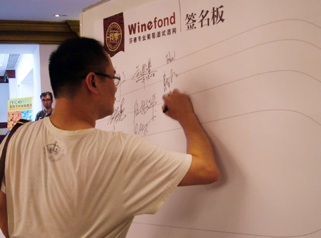 后面来了一位先生,听我介绍了三种酒的不同品种之后,选择了Bishop主教。他尝了一口后,问我,这个酒精度有点高啊?是14.5%么?我也赶忙核实了一下,噢,说中了!呵呵,厉害!我们还一起把那个酒擎起来核实。有意思,看来这位有点不同!我接着问,除了酒精度,您在酒里还有些什么发现?他很认真地慢慢地一边思考一边说,“嗯,虽说这酒的酒精度偏高,喝下去喉咙有点发热;不过,这酒很平衡,回味悠长。有黑醋栗cassis、皮革leather的风味,我喜欢这酒”赫赫,这位是喝过不同酒风格的真正葡萄酒爱好者。随后,他带他的一位当地的朋友也过来品尝我们的酒,他的朋友介绍说他是位Master Sommelier。呵呵,无怪乎!然后,他们饶有兴趣的了解格雷策的酒标。好,那我们就来认识一下。