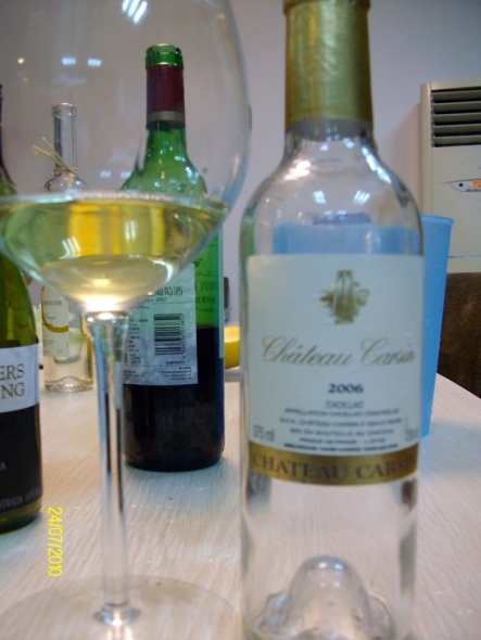 一是法国波尔多Margauw村Chateau Lascombes(拉金庄园,1855年评级为二级庄园),1999年份酒。自品酒以来喝过年份最远的酒。颜色较浅,棕红色,边缘略黄。初闻香味较淡,有些许奶酪香,后烟熏味较重。结构柔和,单宁较重,口感涩、寡,干型,没有品到酸,令我联想到松散的沙土。感觉暮气太浓,不喜欢。
