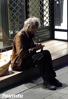 朋友说,在巴黎街头和地铁里的流浪者中,除了东欧其他国家来的前移民,大多有合法的居住权,不然很容易给警察逮住遣返,当然这类人群中还有法国人。虽然他们都可以向政府申请失业救济金,但有人拿到钱后便买酒喝,直至身上的钱用光为止。甚至一些流浪者并不是没有家庭子女,而是在他们的思维里,自由自在的流浪才是他们想要过的生活方式,于是乞讨也成了崇尚自由一种表现方式。当然,还有些则是因一些突发事件和打击而离家出走成为流浪者。在法国,流浪者因为居无定所诚被普遍认为信度不高而不愿意去雇用,这样也形成恶性循环,不少人便以乞讨为生。于是,对大多数人来说,无家可归者只是城市街景的一部分,就像车辆、树木和建筑一样。当然,这类人群中不乏有些是有学识的人物和街头艺术家。