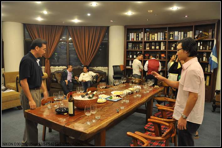 这场品酒会总共品的有六款酒,其中有一瓶售价在3000元以上的小拉菲,其它的5瓶价格从90多元到7百多不等。品酒采用的是世界上最流行的方式--盲品,所谓盲品就是把每瓶酒的酒标全部包住,所有的参与者在事先不知道喝的是哪种酒的情况下来进行品鉴。