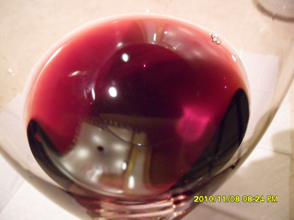 涩口,浓烈(可能与之前喝的酒有关)。浓厚浆莓味道,收结干净,喉头麻辣,回可可苦味,单宁布满舌面,余味悠长。