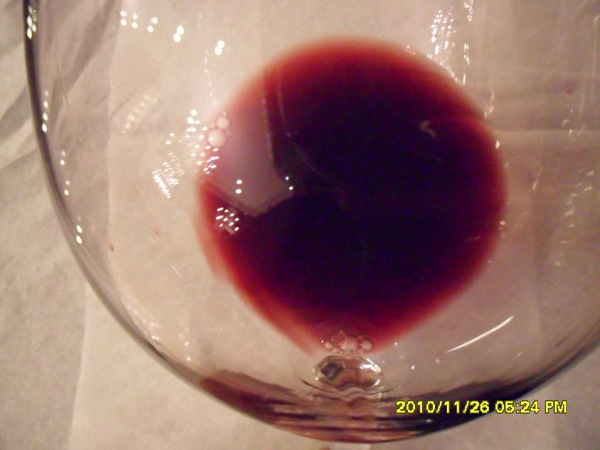 口感辛辣酒精带攻击,浓厚,辛辣封闭果味,收结柔顺,略回甘苦味道,单宁恰当,酒架前跑,后腔乏味,余味中等。
