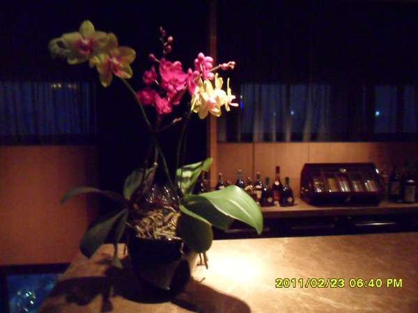 餐厅内景:面对赌场SHOPPING区的包间,水晶般的窗户配合着淡雅的白色兰花,进餐很有愉悦感: