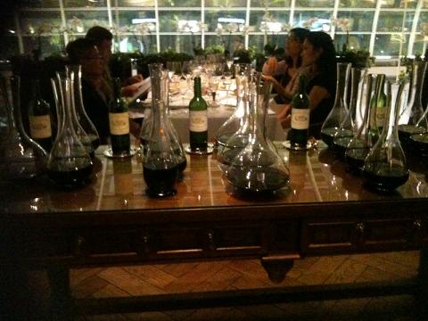这次晚宴喝的酒有:2002年路易王妃水晶香槟,2000年的MAG玛歌白亭,2003年,1996年玛歌红亭,99,95,89年玛歌,红酒正在醒酒中,看着都流口水了。