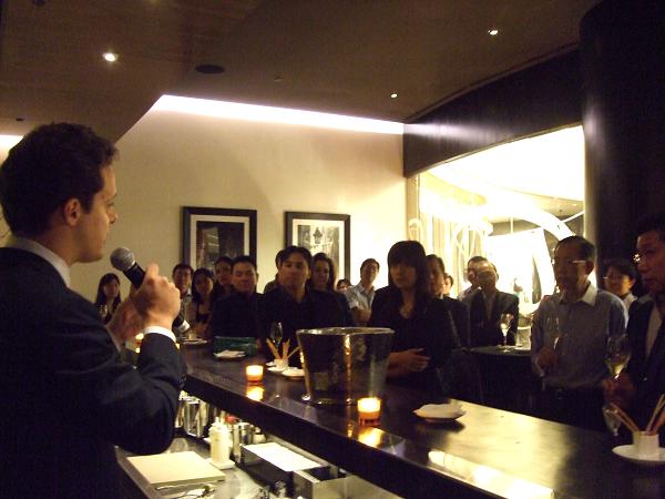 COCKTAIL时光,大家手捧CRISTAL香槟,听年轻的亚洲品牌经典至开幕词,他也是玛歌首席酿酒师的儿子: